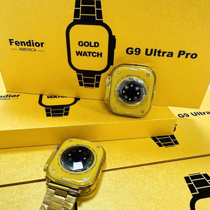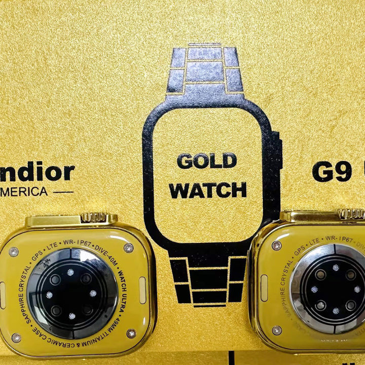 What’s in the box: 1 x G9 Ultra Pro Watch, 1 x Golden Rolex Strap, 1 x Golden Alpine Loop Strap, 1 x Black Ocean Strap, 1 x Wireless Charger, 1 x User manual